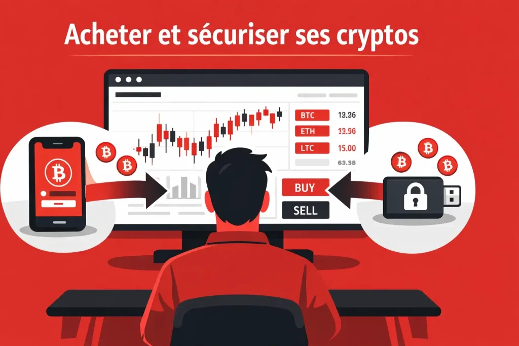 - On peut acheter des cryptos via des plateformes d’échange, puis les stocker dans des portefeuilles sécurisés.